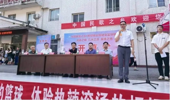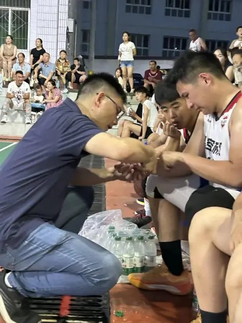 17时,杨坝镇全民健身篮球联赛在镇文化广场开幕,团队成员全程参与,为球员健康保驾护航,为赛事注入青春活力。