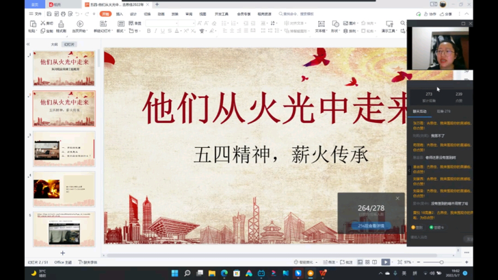 为纪念五四运动,党建促进会于2022年5月7日在钉钉开展了“谱青春华章,展时代风采”的线上精品党课,共有305人参加了此次线上党课。此次活动有幸邀请到康复学院辅导员吉思佳为主讲人。 吉老师向我们详细讲述了五四运动的背景,过程和意义以及在新形势下中国在政治军事等领域所面临的挑战与困难,鼓励青年学生努力奋斗,为祖国伟大复兴贡献自己的力量。