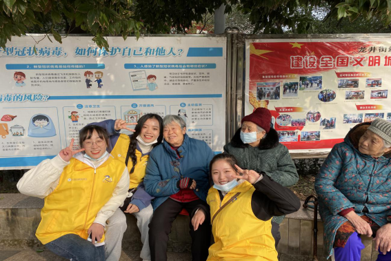 迎着冬日暖阳,踏着遍地梅香,同学们整理队伍前往龙湖社区,按照分组,各组分别对家中的老党员及广场上的老人进行访问和记录。