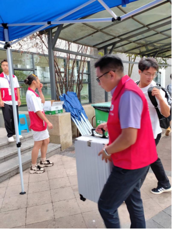 清晨坚守,尽职尽责。清晨8点,党员教师们便已准时到岗,在新生报到处、宿舍区等点位严阵以待,以饱满的热情迎接每一位新同学。