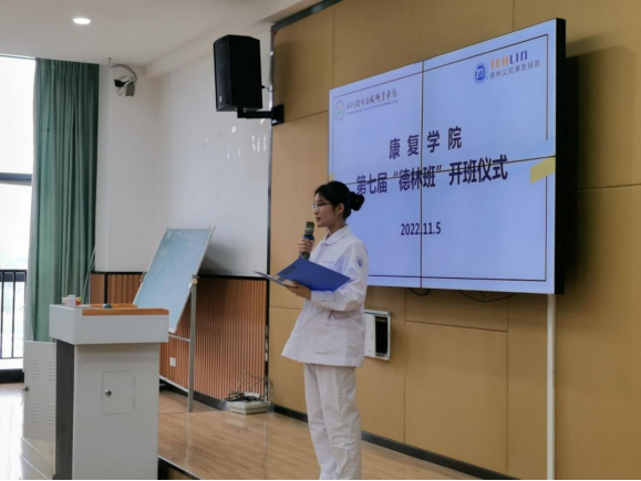 开班仪式上,康复学院副院长谢文贤对德林长期以来支持康复学院人才培养表示感谢,对参加订单班的同学提出期望:要把握“订单班”学习平台,好好学习,强化专业知识提升职业技能,取得好的学习成绩,提升就业竞争力。