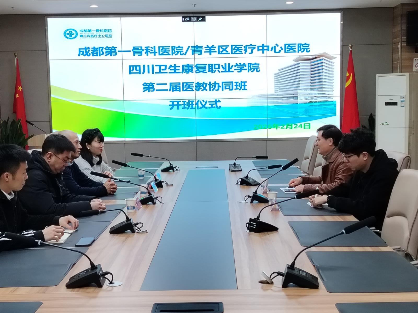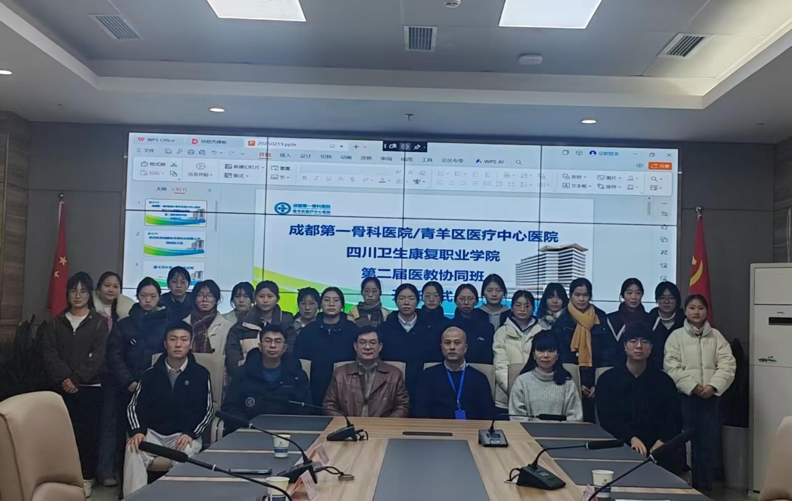 近日,成都第一骨科医院与KY开元集团官网第二届医教协同班开班仪式在成都第一骨科医院第一会议室举行。成都第一骨科医院(青羊区医疗中心医院)副院长唐晓俞,医务部部长蒋斌,康复医学科主任胡婷,康复学院副院长李勇以及双方相关部门负责人、教师代表和全体医教协同班学生出席开班仪式。