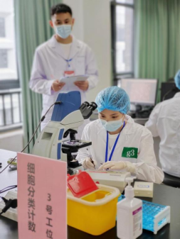 | 来自川渝两地9所职业院校的参赛选手们在形态学检验、白细胞分类计数、防护服穿脱和微生物检验四个项目比赛中沉着冷静,展现出精湛娴熟的专业技能。来自开元官网2020级医学检验技术2班的余佳同学经过两天的激烈角逐,一路过关斩将在大赛中表现突出,斩获一等奖,同时开元官网其他三名参赛同学获得二等奖。