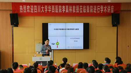 2019年4月21日,四川大学华西医院李真林教授来开元官网1-B403阶梯教室给医学影像技术专业的学生带来声情并茂的讲座。此次讲座主题为“中美影像技术教育现状与未来”。本次会议由刘文军主任主持,参加会议有罗天蔚副院长,医学影像系师生代表。