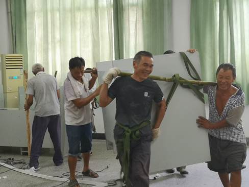 由于大部分影像设备都小而贵重,影像系缪洁老师顶着烈日亲自爬上货车指挥工人将设备放稳护好,并安排人员全程护送。在影像系人眼中,这些都是需要细心呵护的“宝贝”。