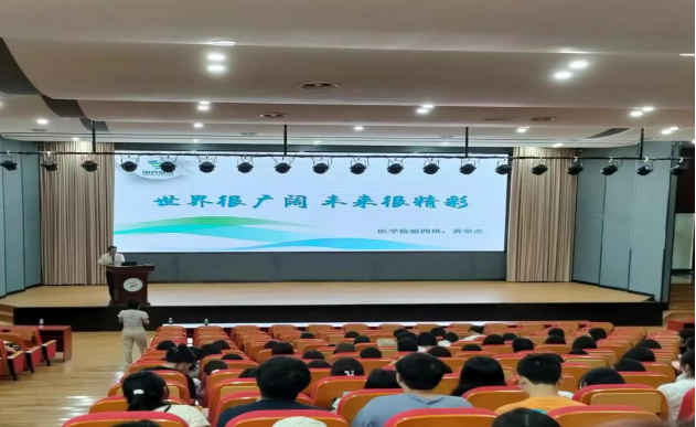 5月15日,学校举办职业教育校园开放日专业体验活动,优秀校友黄荣杰重返母校,与医学检验技术的师弟师妹们齐聚3-C209学术报告厅,以“世界很广阔,未来很精彩”为题分享了他丰富的职业经验和人生感悟。