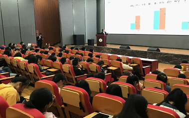 大会进行到这里,由秦志刚主任分享教师队伍暑期进行的实践调查成果,同时也为即将走向实习工作岗位的我们指点,激励同学们更加努力学习,全面发展。