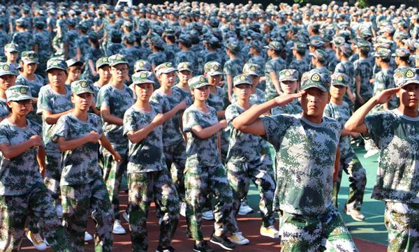 9月12日,2017级新生在体育场进行军训汇报演出,标志着为期一周的军训终于迎来尾声。经过一周的刻苦训练,医学影像系的新生们在演出中表现优秀,阳光自信,展现了良好的精神面貌。