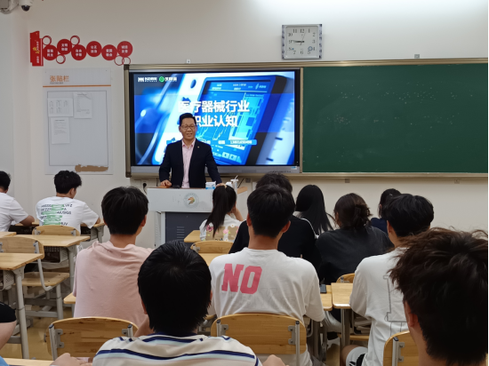 2025年6月11日,校企友好合作单位上海名迈教育科技有限公司总经理杨磊莅临开元官网,为临床医技学院智能医疗装备技术专业的学生举办了一场关于医疗器械行业的职业认知讲座。