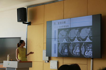 孙妙旭主要从肝细胞癌的概要、病因、病理、临床表现、影像学检查方法、影像学典型表现及鉴别诊断进行讲解。用典型的影像图像重点突出肝细胞癌的影像学表现。同时对比了肝细胞在螺旋CT与MRI的临床应用的优缺点。讲座结束后,她与各位老师进行了一个短暂的学术交流,通过交流大家相互学习,共同进步。