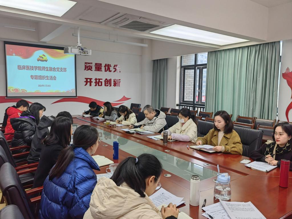 2024年1月18日上午,临床医技学院师生融合党支部在2-B315党员活动室召开了专题组织生活会,全体党员参加。