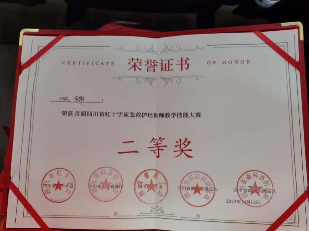 喜报:临床医技学院教师徐锦,代表自贡红十字会参加四川省第二届红十字应急救护大赛暨首届红十字应急救护培训师教学技能大赛,获二等奖。