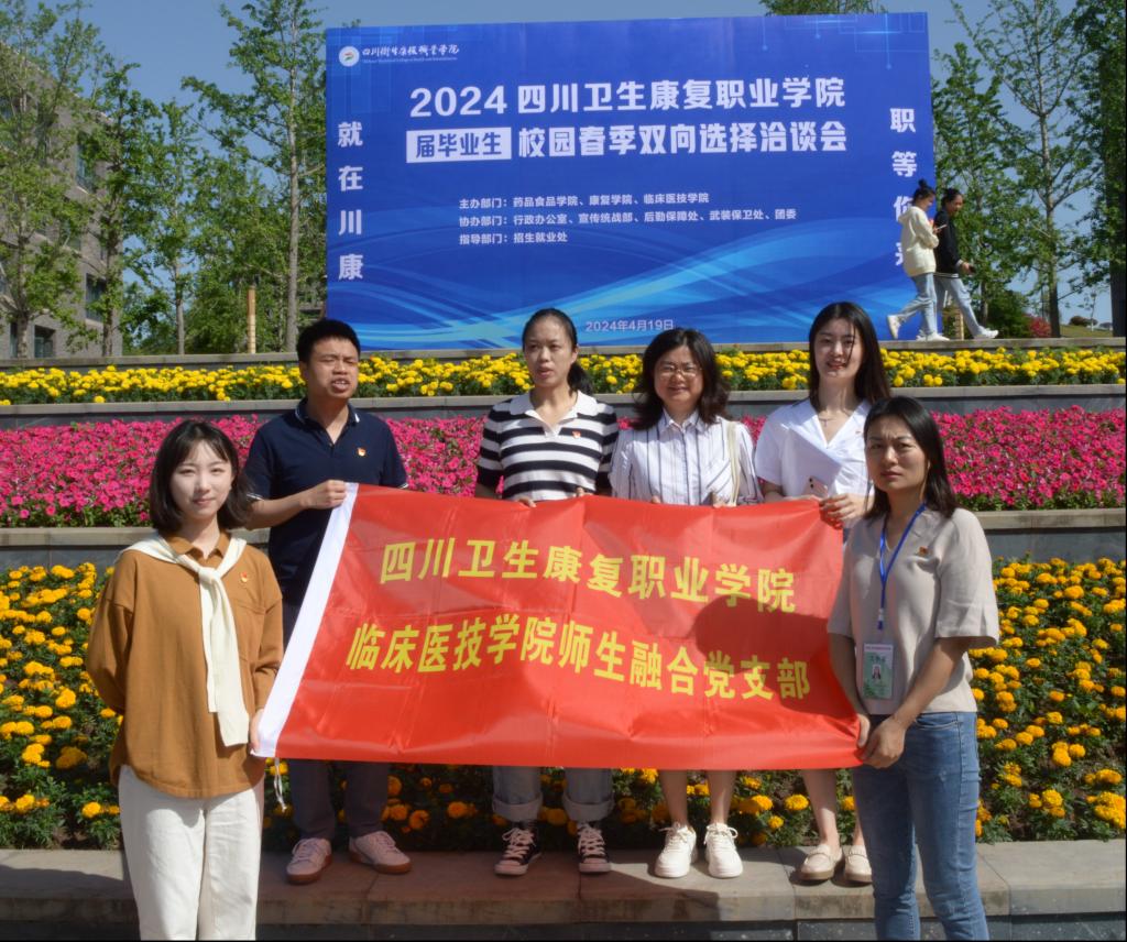 4月19日,临床医技学院联合药品食品学院、康复学院成功举办校园双选会。同时,临床医技学院师生融合党支部组织全体党员到现场开展“党建聚力促就业,勇往‘职’前暖心帮”主题党日活动,保障双选会活动顺利进行。
