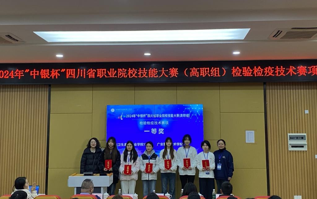 喜报:2024年12月13日-15日,开元官网成功承办2024年“中银杯”四川省职业院校技能大赛(高职组)检验检疫技术赛项,临床医技学院医学检验技术专业2支参赛队分别以排名第一、第三的成绩斩获一等奖和二等奖,邹兴玉、刘偲媛两位老师荣获“优秀指导教师”。