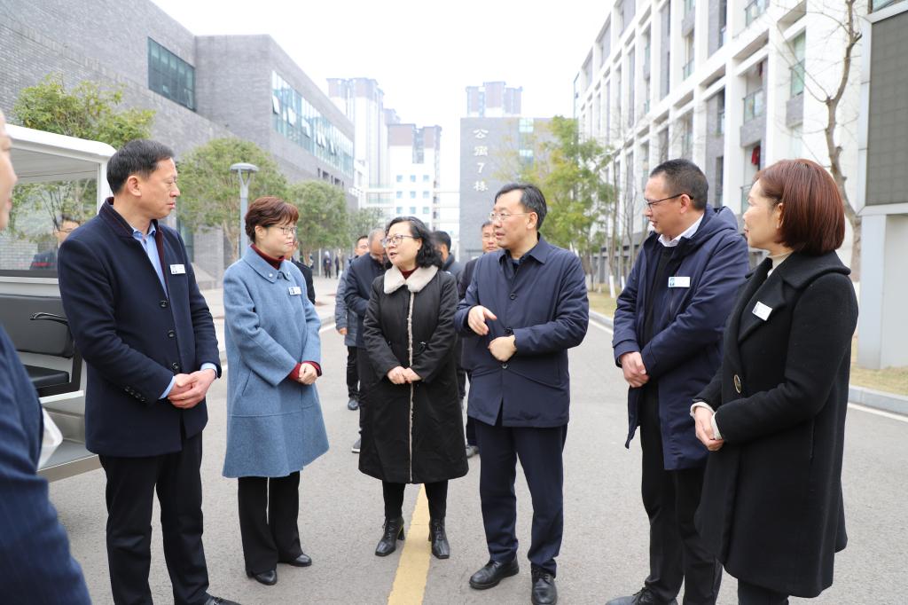 张澜涛一行详细查看了食堂、学生宿舍,并实地检查智慧养老实训基地、新图书馆建设项目现场,听取了学生返校、教育教学、安全工作、思政队伍建设、校区建设等情况,并在学生宿舍与辅导员亲切交谈。他对学校扎扎实实做好开学工作,用心用情关怀寒假留校学生,务实推进辅导员队伍建设表示认同,并强调要抓好食品安全,深化产教融合、校企合作,以“双高”建设为抓手,持续提升内涵质量,培养更多高素质技术技能人才,为健康四川贡献新的力量。
