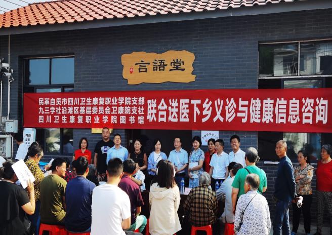 为更好解决村民看病就医的实际问题,加强健康和医学知识的宣传普及,增强广大村民的健康保护意识,助力乡村振兴,5月16日,学院图书馆、民革卫康院支部、九三学社卫康院支社一行11人前往学院对口帮扶的富顺县古佛镇凤仪村联合开展“送医下乡义诊和健康信息咨询活动”。图书馆副馆长牛小梅,民革卫康院支部主委李爽乐及九三学社卫康院支社主委林稚颖携眼科、内分泌科、耳鼻喉科、内科医疗专家等参与了此次活动,古佛镇党委书记甘桃、镇长谢永刚、凤仪村第一书记陈翔代表古佛镇村民对各位专家的到来表示热烈欢迎和衷心的感谢。