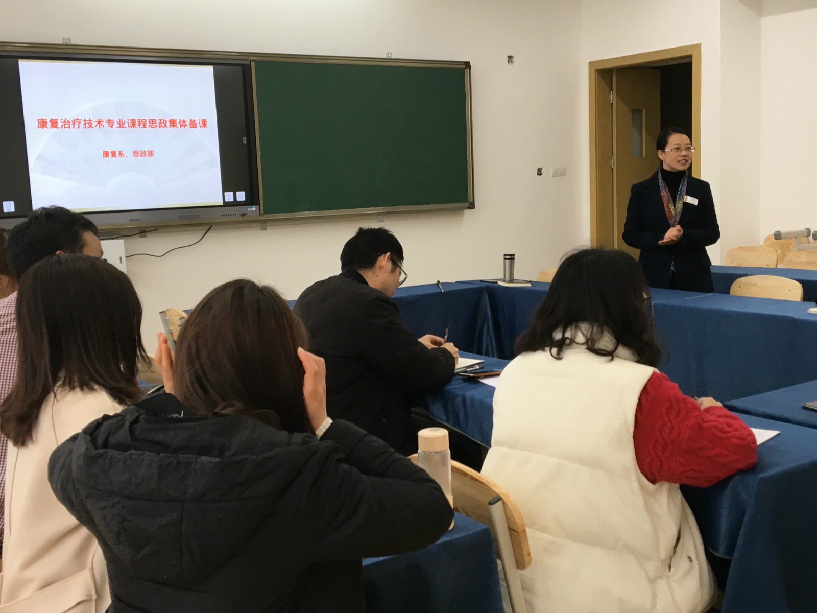 为推进学院“课程思政”建设,充分发挥专业课程的育人功能, 2019年3月13日下午,思政部与康复系在1-A104开展了康复治疗技术专业课程思政集体备课。