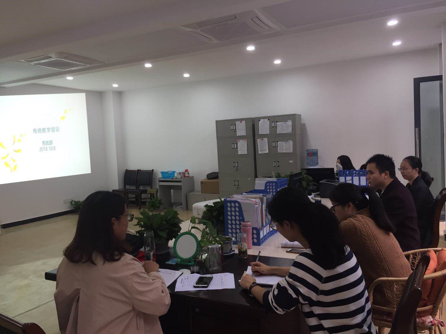 10月9日下午,思政部对5位新进教师开展了传统教学培训,培训会由思政部副主任秦丹、罗智凯主持。