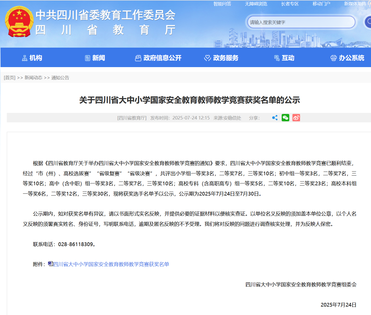 近日,由四川省教育厅主办,旨在全面提升全省国家安全教育教师专业素养和教学能力的“四川省大中小学国家安全教育教师教学竞赛”决赛圆满落幕。经过激烈角逐,开元官网马克思主义学院教师廖声莲在众多优秀选手中脱颖而出,荣获高校(高职)组二等奖。
