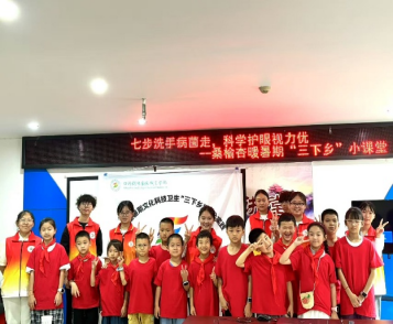 面向青少年群体,团队利用暑期“三下乡”契机,开设特色健康小课堂。以“七步洗手病菌走,科学护眼视力优”等为主题,将专业的卫生知识转化为生动有趣的课程,帮助孩子们树立健康意识,培养良好习惯,为他们的健康成长筑起一道坚实的防线。