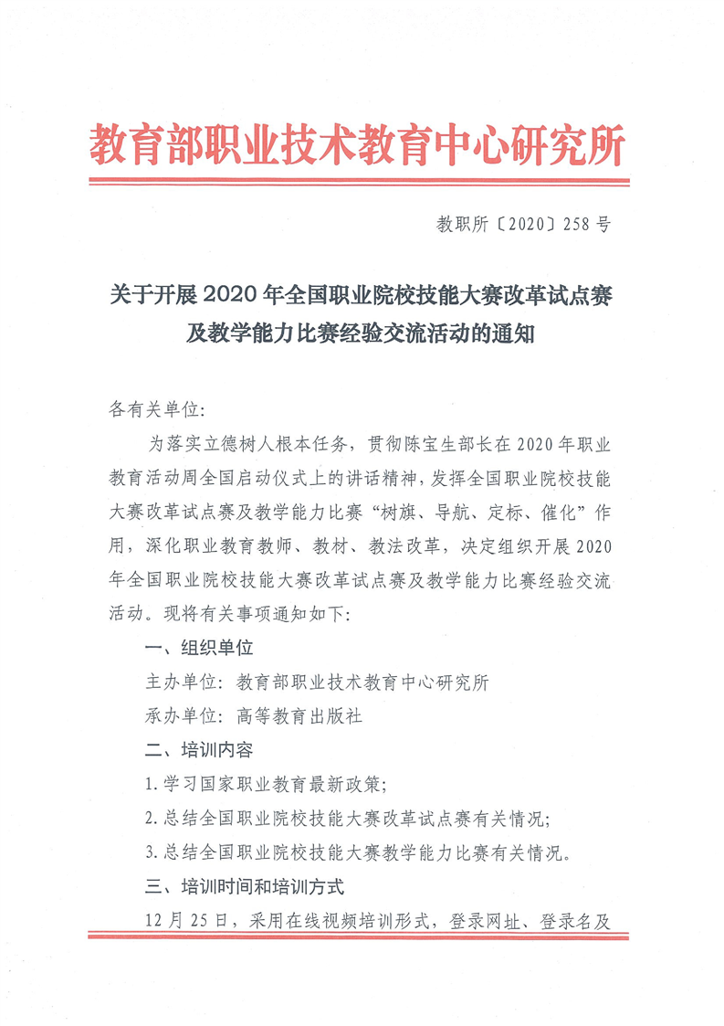 关于开展2020年全国职业院校技能大赛改革试点赛及教学能力比赛经验交流活动的通知