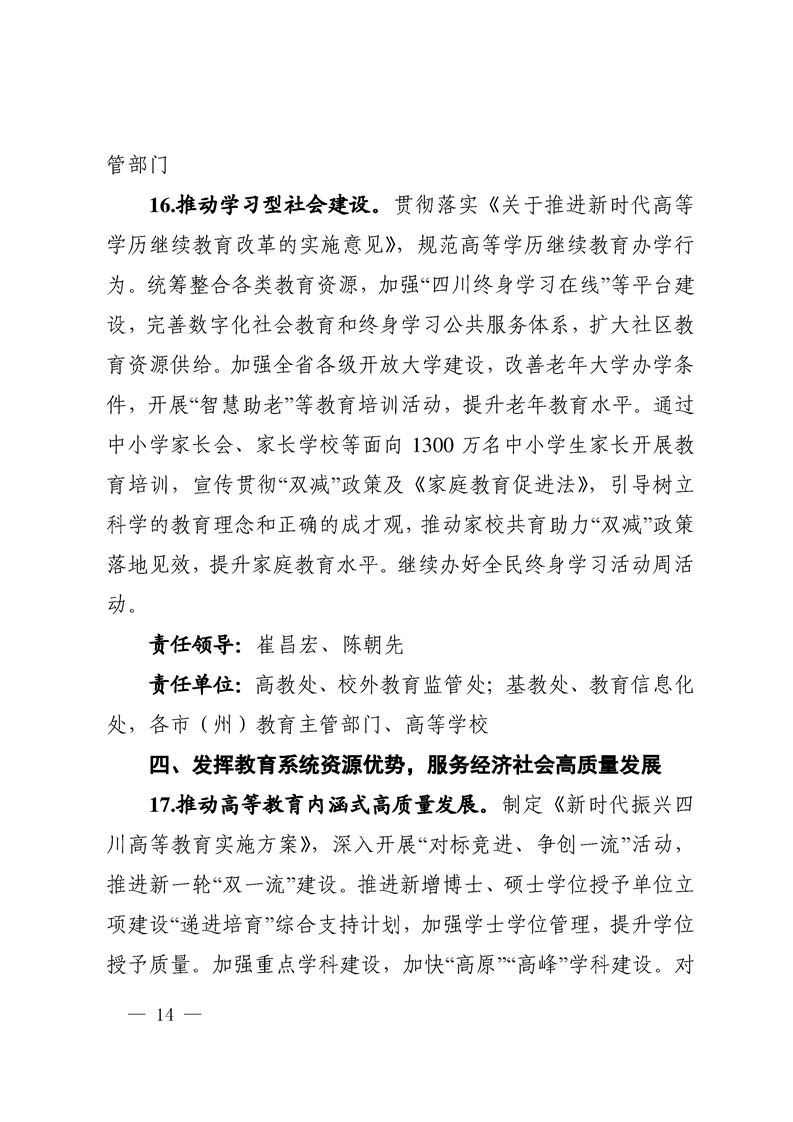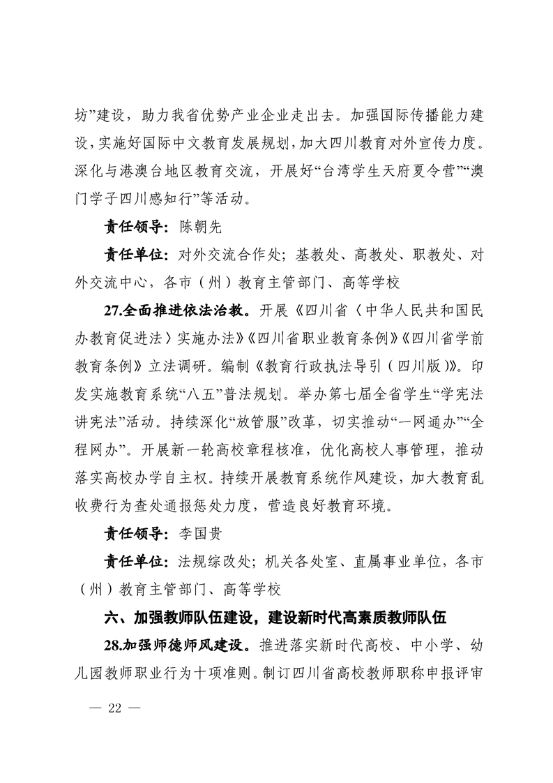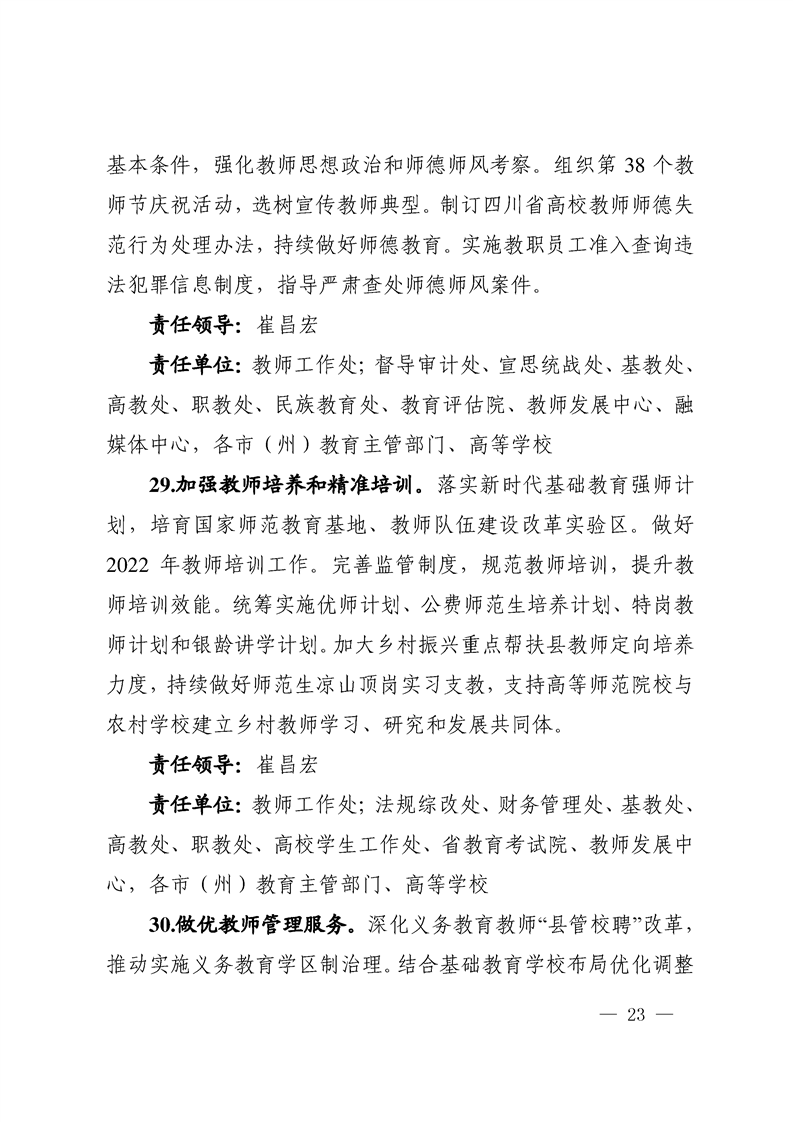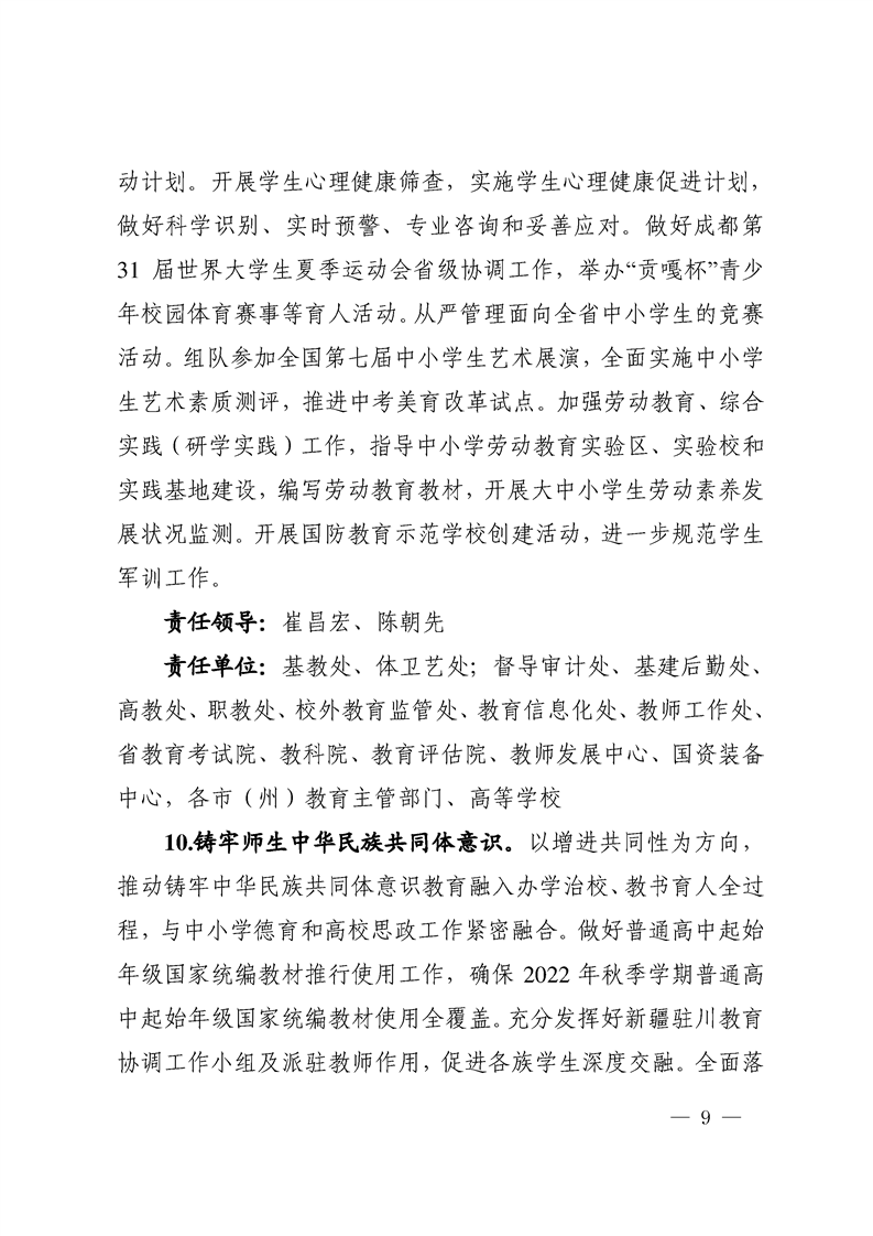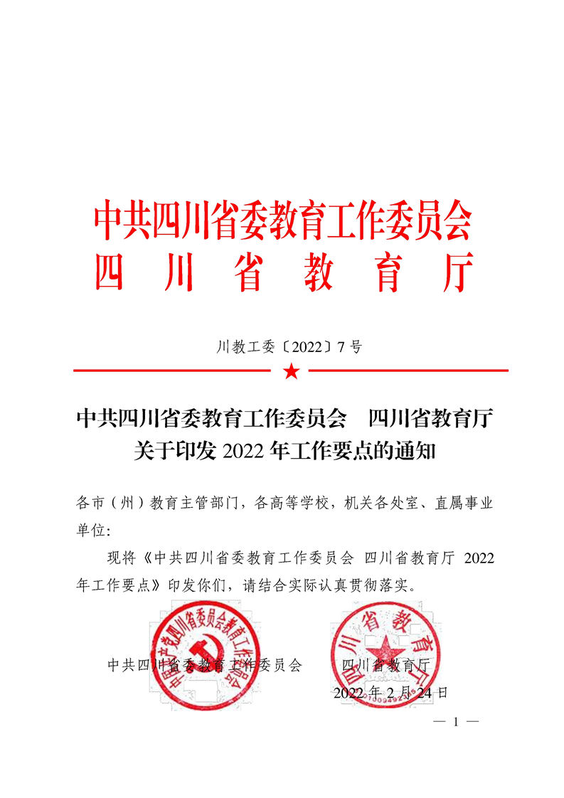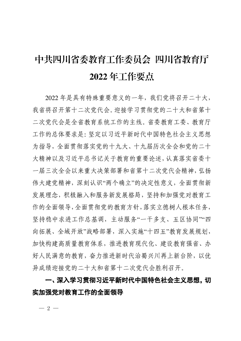 四川省教育工委、教育厅2022工作要点