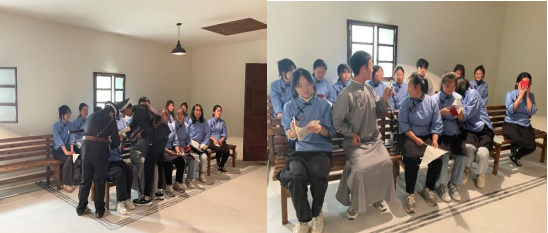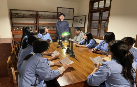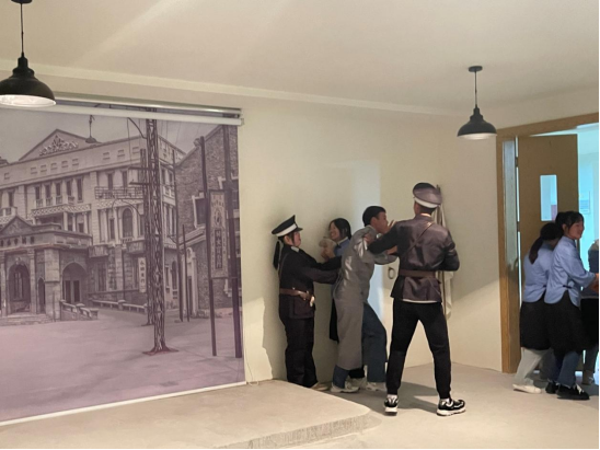 11月23日,大型原创红色剧本《风云五四》在马克思主义学院“思政沉浸式教室”迎来首秀。此次思政实践活动由马克思主义学院院长秦丹担任主持人,青马学苑二课堂50名学生及3名教师共同参与。