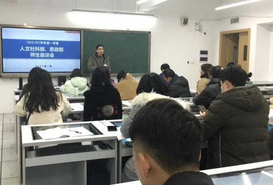 1月7日下午,人文社科部和思政部在4-A601联合举办师生座谈会。人文社科部主任马应安、思政部副主任罗智凯,两系部教学干事、教研室主任、教师代表、2020级各班学生代表共60余人参会。
