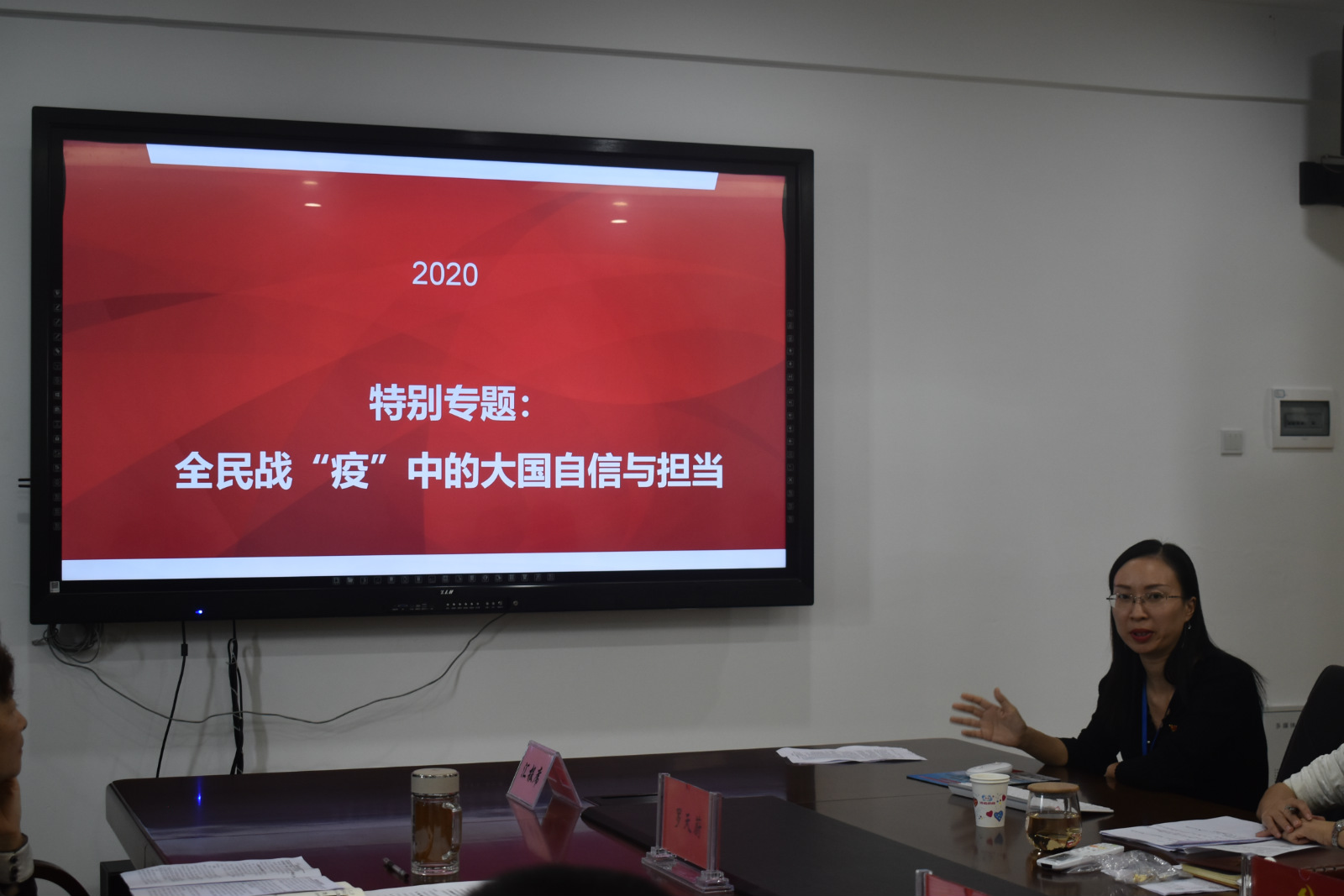 思政部副主任秦丹以串讲形式,从“人类正面临一场史无前例的战“疫”;中国从容应对疫情的自信理由;中国的大国担当与国际评价;认识疫情对健康行业和健康从业者带来的影响”四方面对思政开学第一课专题进行汇报。此专题是专门针对大一新生“量身定制”,让同学们领会中国从容应对疫情的自信理由,培育卫生类学生崇高的职业荣誉感和责任感。汇报完成之后,与会成员针对此内容进行集体研讨,为不断完善思政开学第一课专题建言献策。