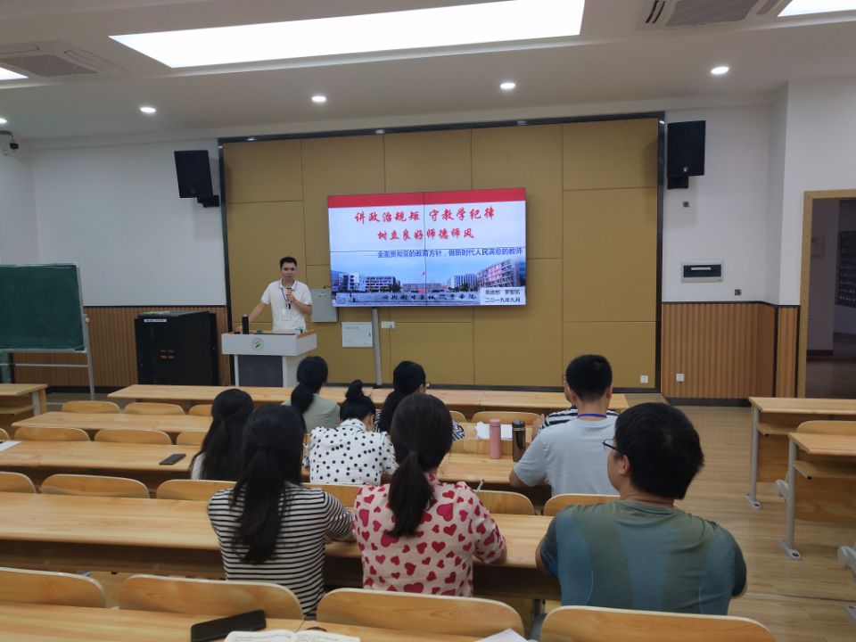 为全面贯彻党的教育方针,引导教师树立良好师德师风。思政部副主任罗智凯于9月12日在4-D305针对学院教师开展了以“讲政治规矩 守教学纪律 树立良好师德师风—全面贯彻党的教育方针,做新时代人民满意的教师”为主题的院级公开课,思政部专兼职教师参加。