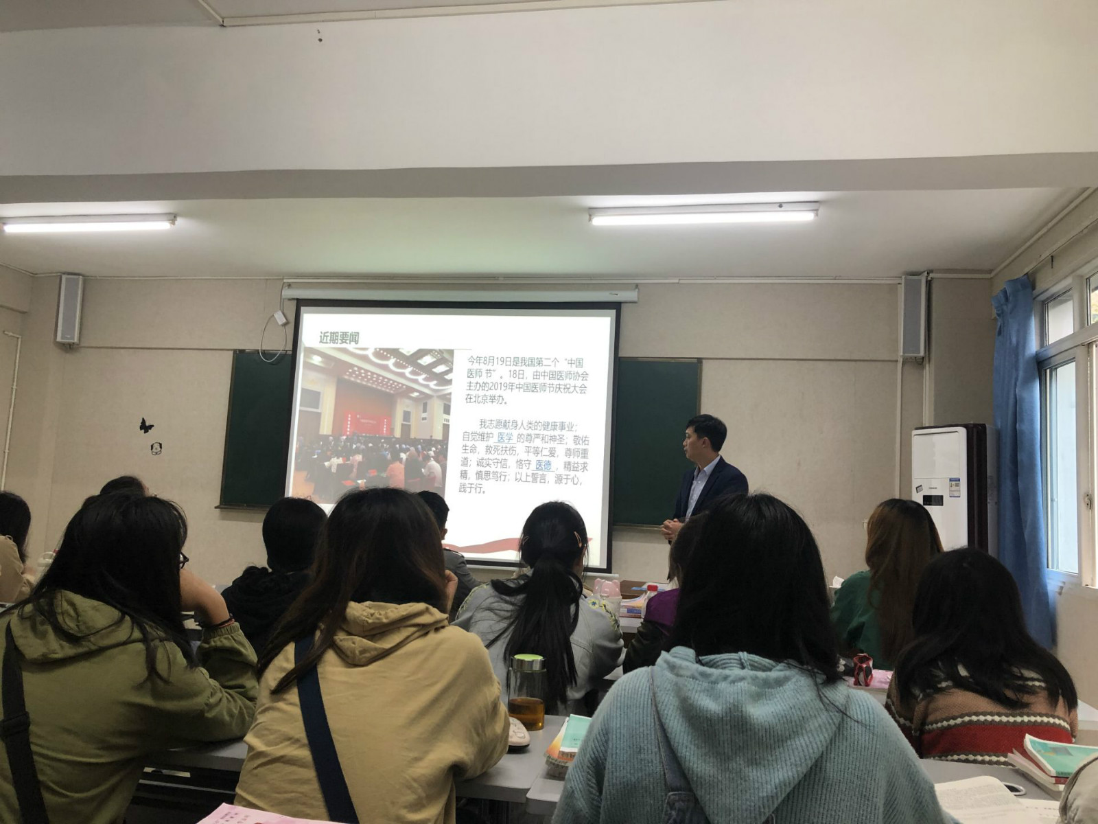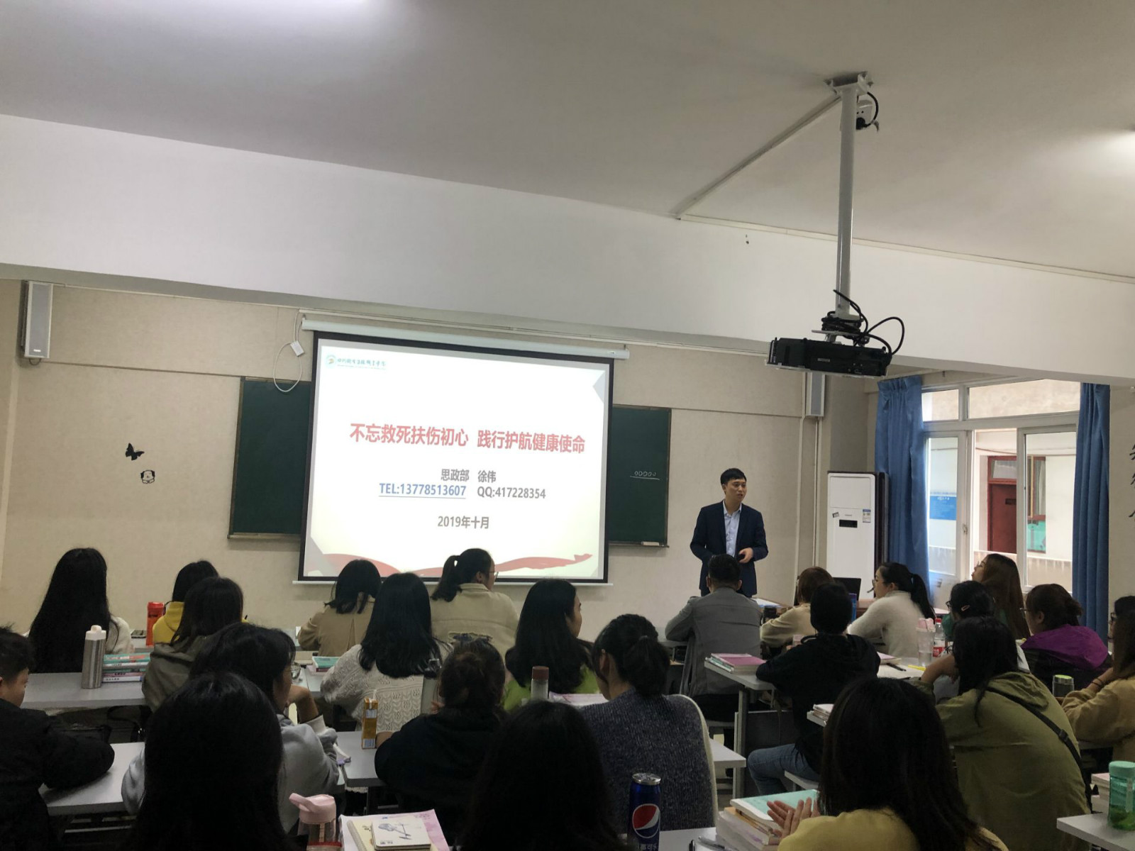 为配合学院护理系和宜宾二院联合培养方案。思政部教师徐伟于10月16日赶赴宜宾二院,为联合培养学生送上一堂“有内涵”、“有温度”、“有立场”的形势与政策课。现场学生认真听课,积极思考,在老师的引导下不断创新思维,也能够在课堂上积极与老师互动交流。“送课上门”创新了思政课的授课方式,秉持以学生为中心的教学理念,服务专业发展。“风里雨里,我在这里等你”,思政部教师一直陪伴学生左右,全力助力学生健康成长。