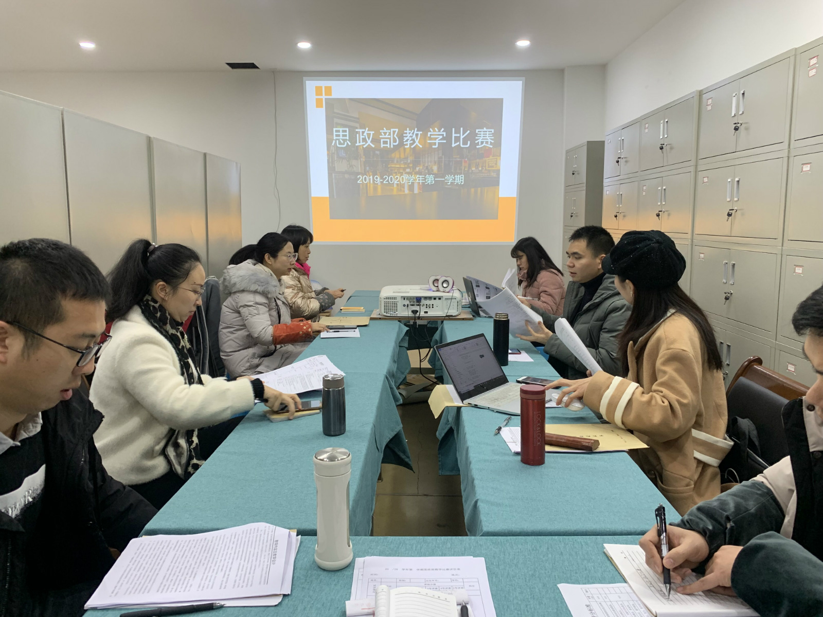 为以赛促教和培养参赛选手,思政部于1月13日在4-C109举行了教师教学能力比赛。三个教研室分别选派一名选手参加比赛,思政部专兼职教师到场观摩。
