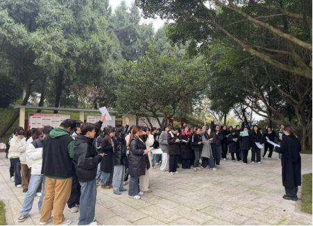 在第十二个国家宪法日之际,马克思主义学院教师党支部党员教师组织100余名青年学子前往自贡市革命烈士陵园,开展了以“缅怀英烈,法治同行”的主题宣传活动,为青年大学生打造了一堂沉浸式、互动性的“法治思政实践课”。