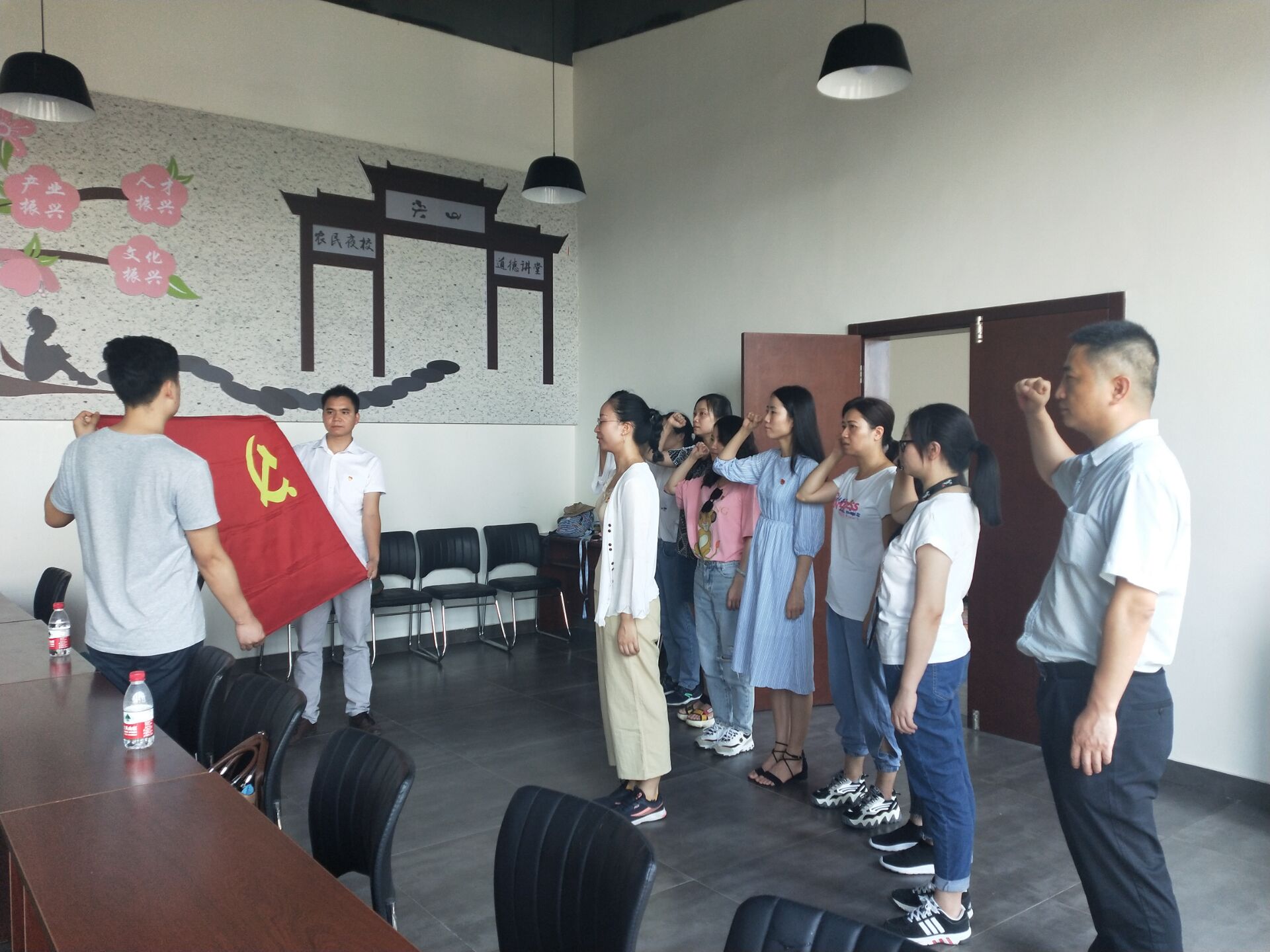为体悟全面建成小康社会的成果,扎实推进“不忘初心、牢记使命”常态化,进一步了解乡村振兴政策的具体落地情况。思政部党支部于2020年6月24日上午,组织全体党员和部分兼课教师前往自贡市荣边镇开展了“到‘乡村振兴’一线感悟党的初心和使命”主题党日活动。