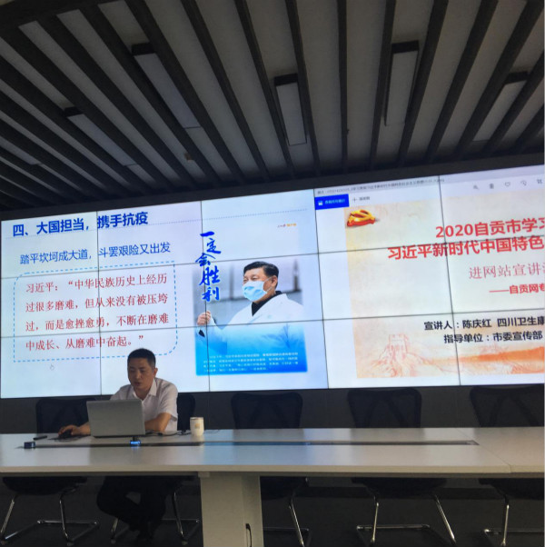 2020年7月3日下午,由市委宣传部、市委网信办联合主办的“2020自贡市学习贯彻习近平新时代中国特色社会主义思想进网站宣讲活动—自贡网专场”在自贡日报社演播大厅举行。思政部副教授陈庆红主讲了题为“从‘全民战役’看‘中国之治’”的党课。市委宣传部理论科副科长乔亮主持本次宣讲活动,部分融媒体从业人员及思政部教师聆听了此次宣讲活动。