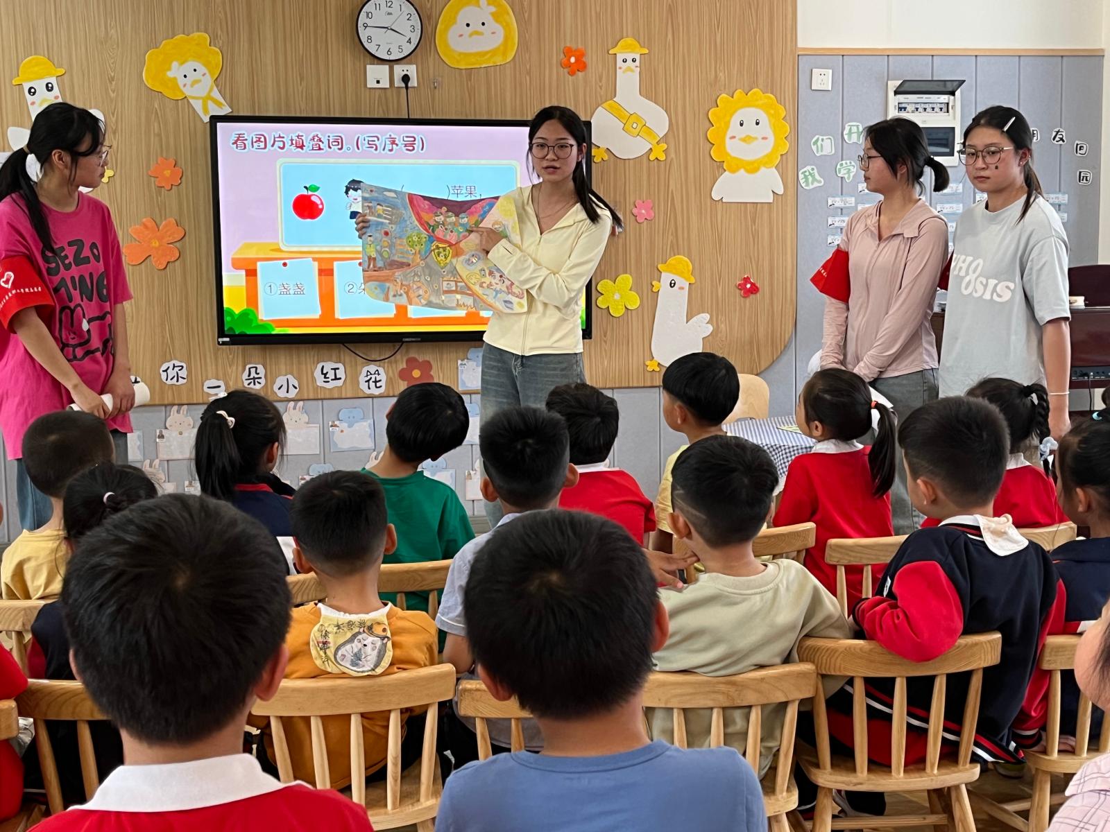 活动最后,“大学生老师”对各小组表现进行总结,为获胜小组颁发小贴纸、小徽章等奖品,同时点赞孩子们的努力与团队精神。