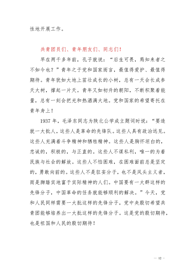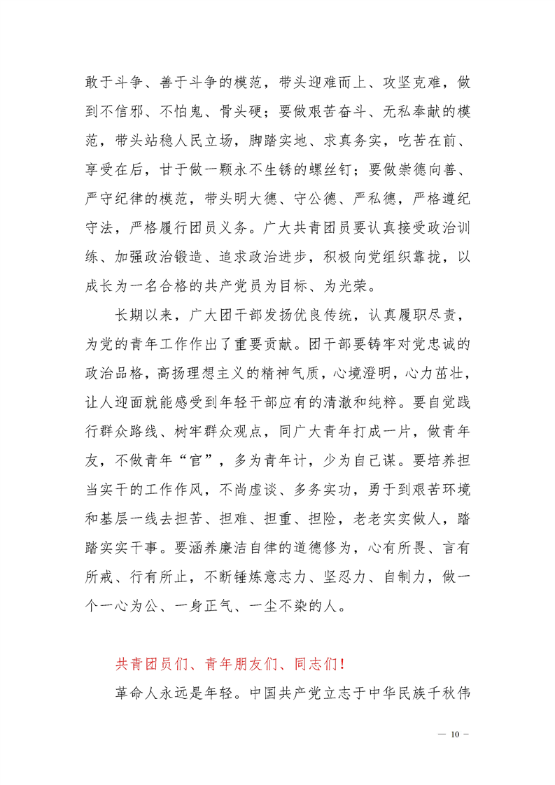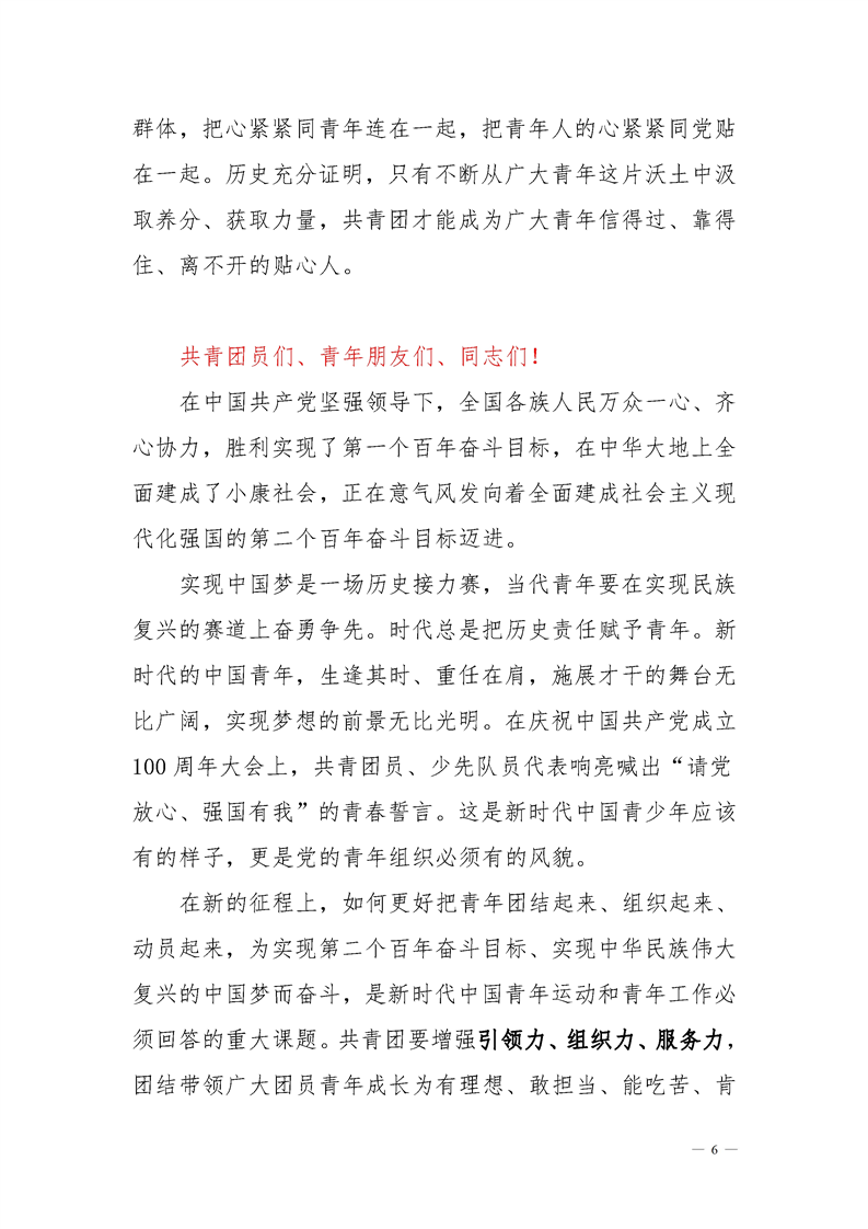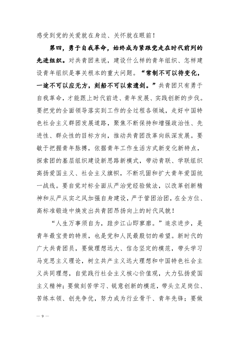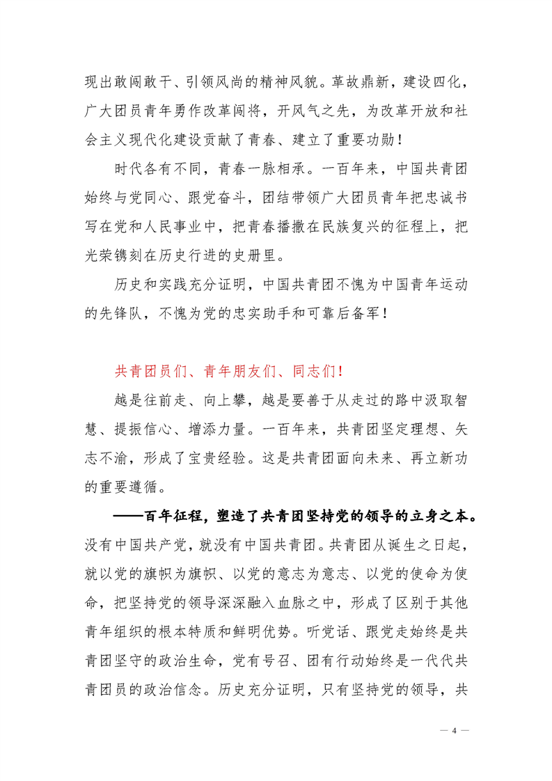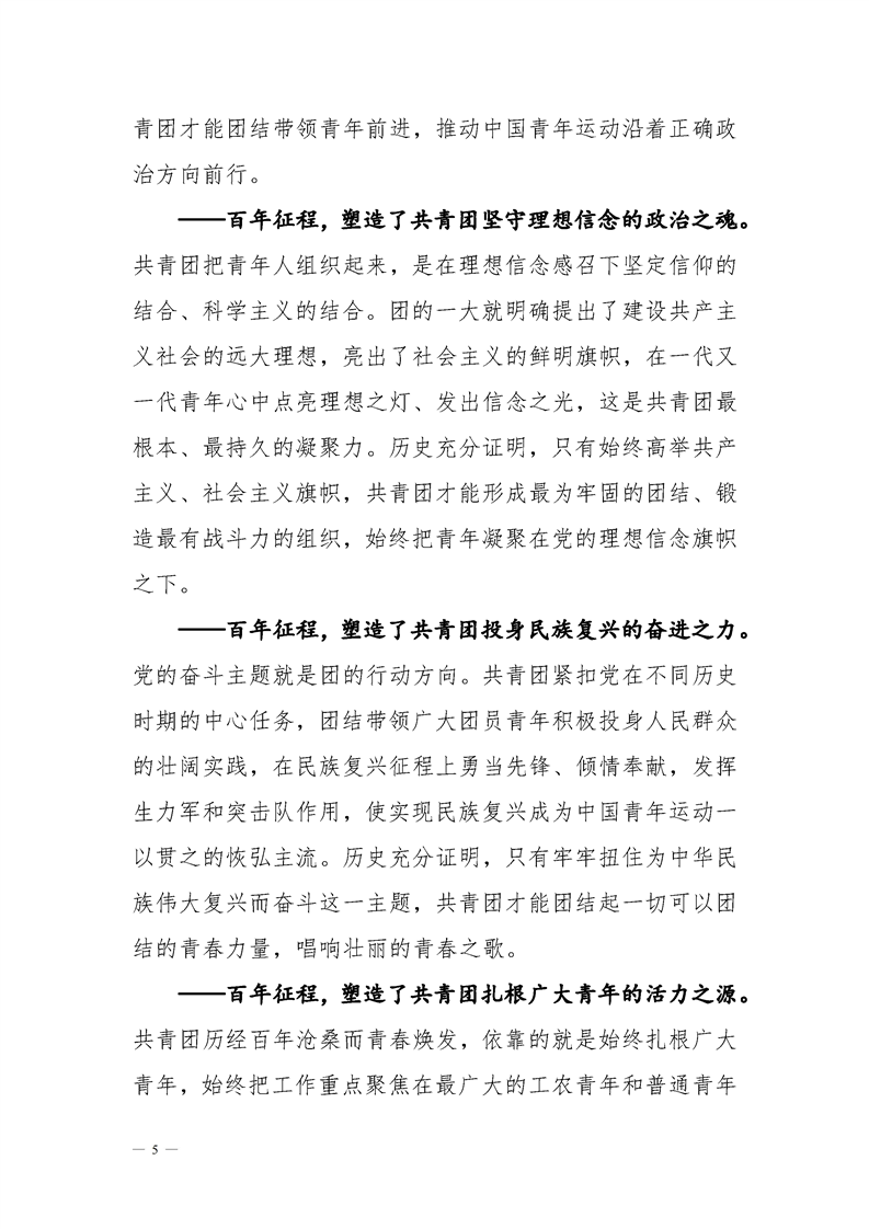 习近平在庆祝中国共产主义青年团成立100 周年大会上的讲话