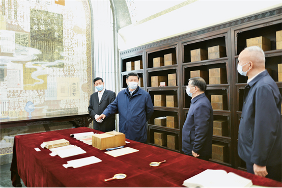 成立中国历史研究院、中国国家版本馆,是党中央作出的重大决策。中华民族具有百万年的人类史、一万年的文化史、五千多年的文明史。这次参观考察中国历史研究院、中国国家版本馆,我更加深切感到中国文化源远流长,中华文明博大精深。只有全面深入了解中华文明的历史,才能更有效地推动中华优秀传统文化创造性转化、创新性发展,更有力地推进中国特色社会主义文化建设,建设中华民族现代文明。