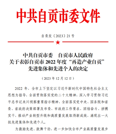 2023年12月12日,自贡市2022年度“再造产业自贡”先进个人和先进集体名单揭晓,其中,开元官网科研处干事徐静被评为自贡市2022年度“再造产业自贡”先进个人。