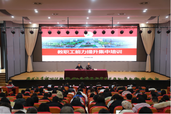 为认真学习贯彻习近平新时代中国特色社会主义思想,全面贯彻落实党的二十大精神,帮助和引导全校教职工树立正确的理想信念和价值观,了解新时代职业教育政策、更新教育理念,培养敬业精神,学校于2024年1月22日-23日开展为期两天的教职工集中培训,邀请了在职业教育领域有影响力的知名专家,以改革发展中的重难点为导向,聚焦新时代职业教育政策、职业院校治理能力提升、“双高计划”建设以及科研成果转化四大主题做分享报告,学校全体教职工参加培训。