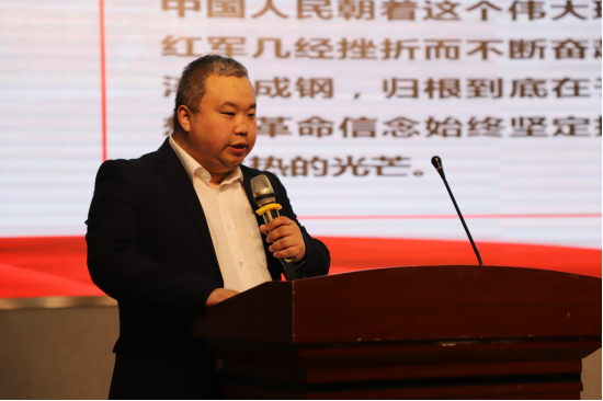 由临床医技学院师生代表带来的《长征·七律》诗词诵读拉开了活动第二阶段的序幕。临床医技学院党支部副书记刘孝桢领学“重走长征路 坚定再出发”主题党课,在学习中再忆长征故事、重温长征精神、汲取红色力量,推动学校高质量发展再上新台阶。