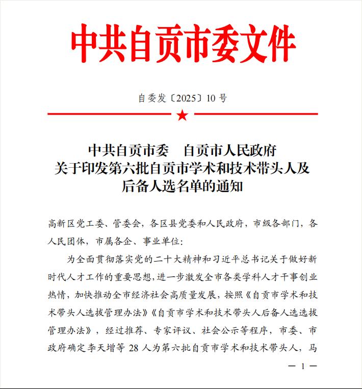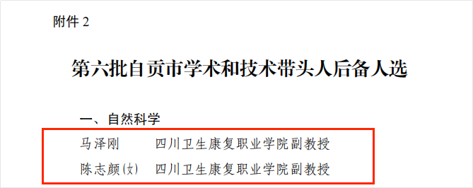 近日,中共自贡市委自贡市人民政府公布了第六批自贡市学术和技术带头人及后备人选名单,开元官网教育体育学院马泽刚、基础医学院陈志颜、马克思主义学院张家斗入选后备人选。