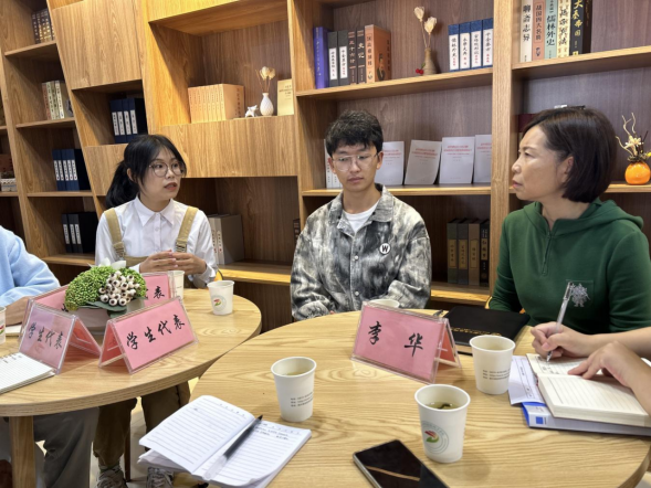 。学校党委副书记、工会主席李华与学生们就学业发展、专业成长等问题进行了暖心交流。