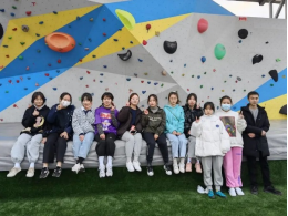 我充满期待的去尝试攀岩,在手脚的并用下,我离开地面攀岩在垂直的岩壁上,努力的用尽各种方式,伴着大家的呐喊声,告诉自己一定要坚持。每一个人都努力的向上攀爬,虽然最后并没有登顶,但大家都感觉到了努力到极限的喜悦。此时,是否登顶,对每个人来说已经没有什么意义,重要的是留在我们每个人心中的那义无反顾岩壁上的挪动,是队友们为自己每一次努力的喝彩,面对岩壁渴望征服。重要的是我们在其中的坚持与努力中所感悟到的真谛。