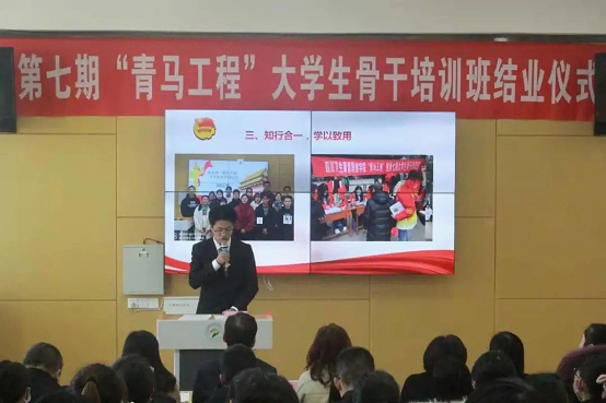 “青马工程”作为一项战略工程、铸魂工程,意义重大,同时也是作为传播马克思主义真理力量、培养社会主义合格建设者与可靠接班人的重要平台。第七期“青马工程”大骨班共有101名学员参训,其中有10名学员在结业典礼中荣获表彰。团支书徐庆一代表全体学员作学业汇报,分享感悟时表示,通过本次理论和实践相结合的青马培训,今后无论是在学习还是生活中,都要以马克思主义思想为指导,践行马克思主义者的使命。
