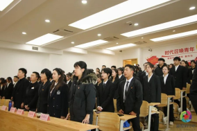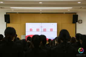 仪式进行第九项:全体起立,奏唱共青团团歌。