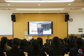 仪式进行第三项:由第九期青马大骨班团支书夏俊良同学进行学业汇报。