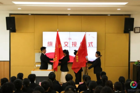 仪式进行第六项:旗帜交接仪式。旗帜交给新的人,让使命与责任也随此传递下去。