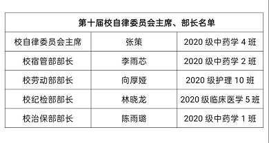 在经历了候选人激烈的角逐下,第十届校自律委员会主席、部长名单如下: