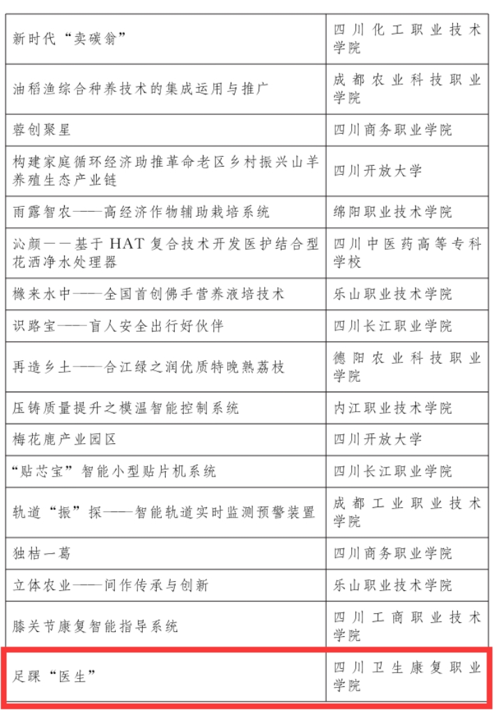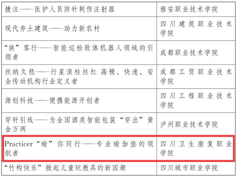 第二届四川省中华职业教育创新创业大赛获奖的通报中,开元官网参赛作品荣获高职组二等奖1项(教育体育学院作品,全省12个)、三等奖1项(教育体育学院作品,全省32个)、优秀奖1项(康复学院作品),最佳人气奖1项(《Practicer “瑜”你同行——专业瑜伽垫》排名全省高职人气第一)。